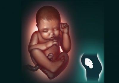 На девятой недели малыш уже имеет глазки с пока закрытыми веками. У него заметны ушки и проявляется шейка. Ручки и ножки еще растут, ступни становятся длиннее. Появляются первые