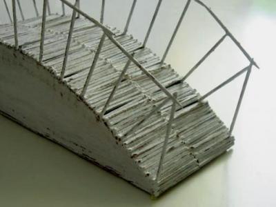 Понадобится: Картон Спички Клей Краски Свечка Зубочистки Вырезаем детали будущего моста из картона (4 шт). два листа склеиваем, для удобства Вырезаем не большие связующие части из картона. Они