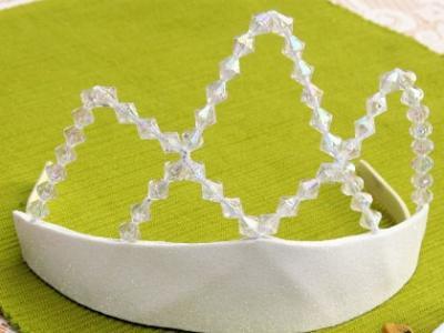Понадобится: Проволка нарезанная на 3 части Горячий клей Бисер белый, или прозрачный с широким диаметром дырки Плотный картон Обруч белого цвета (для каркаса) Изгибаем все три проволки в