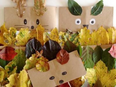 Понадобится: Свежие листья Коричневый бумажный мешок (8 «х 13,5») Черно-белые маркеры Клей Ножницы