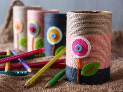 Понадобится: Нитки Фетр Пуговицы Ножницы Клей Картонный цилиндр Подготавливаем наш цилиндр. Наносим средний слой клея, накладываем на него нить. Когда цилиндр готов даем ему подсохнуть. Наносим декор.