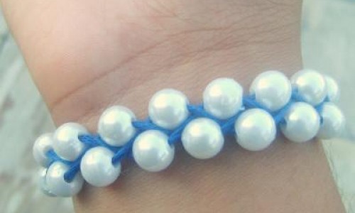 Понадобится: Большой бисер Проволка Плоскогубцы При помощи плоскогубцев загибаем проволку (оставляем не большой запас, для крючка), и набираем нужное количество бус. Придаем форму и закрепляем провод.
