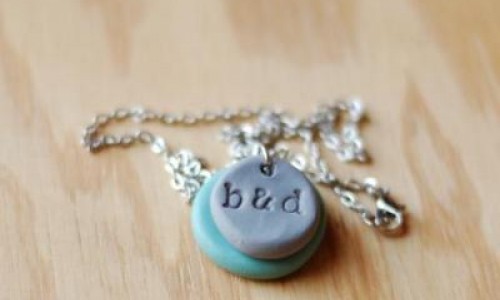 Понадобится: Готовая глина Штампики Цепочка Делаем комочек, придаем ему максимально круглую форму. Затем штампом проставляем нужные инициалы. Делаем отверстие для колец и крепим цепочку. По желанию можно сделать