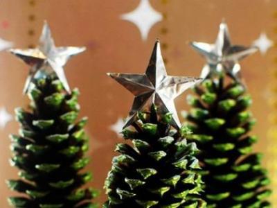 Понадобится: Шишка Клей Золотые блестки Горшочек Звездочка для декора Берем шишку клеим в горшочек, кончики иголок покрываем клеем и посыпаем блестками. С верху клеем звездочку. Даем подсохнуть.