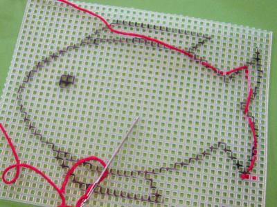 Понадобится: Нитки мулине Большая игла Ткань Рисуем на нашем «панно» рыбку. Даем ребенку «творить».