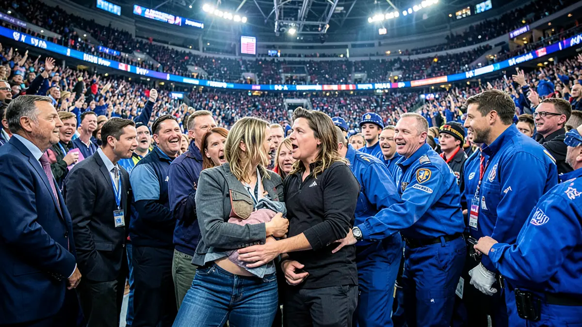 Во время хоккейного матча, помимо рождения ребенка, произошел еще один инцидент. Один из зрителей, получивший удар шайбой, покинул свою позицию с травмой лица, что также привлекло внимание присутствующих.