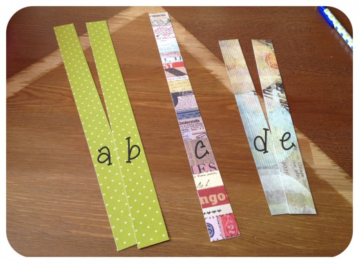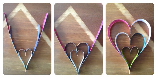 4 прикрепляем полосу «с» формируя сердце, далее крепим следующие полосы.