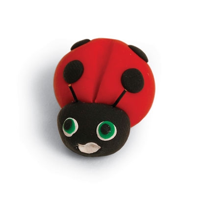 Приготовьте цветной пластилин. Перед работой его нужно хорошенько размять, чтобы он был мягким и пластичным. Лучше мнётся теплый пластилин. Делаем все запчасти (голова, тело, глаза, пятна, усики)