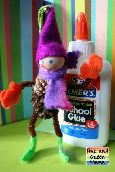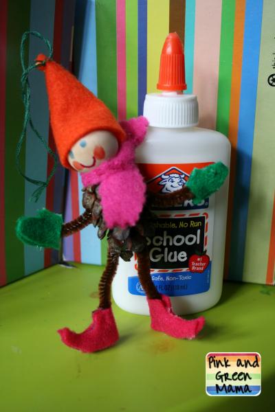 Нарезаем 4 проволоки : 2 короче для рук, две длиннее для ног. Клеем, когда подсохнет клеем бусину, рисуем лицо. К проволоке клеем за ранее подготовленные туфли, перчатки, к голове шарфик, на голову колпак. Даем подсохнуть.