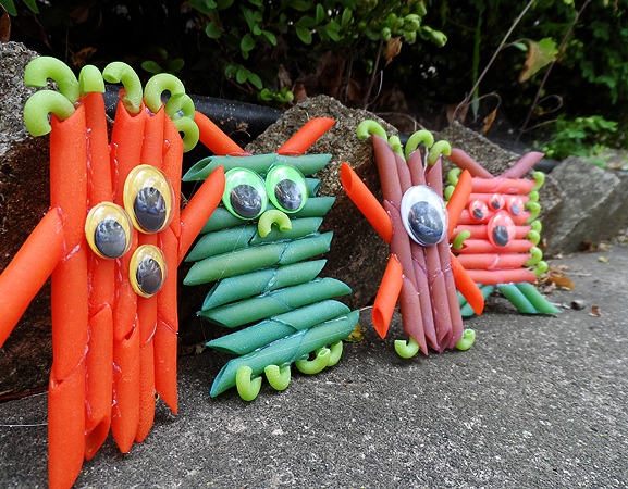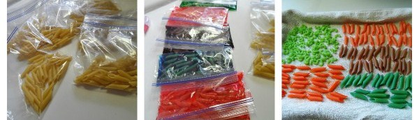 Макаронные весельчаки Понадобится: Различные макароны Красители Клей Красим макароны в желаемые цвета и склеиваем по желанию