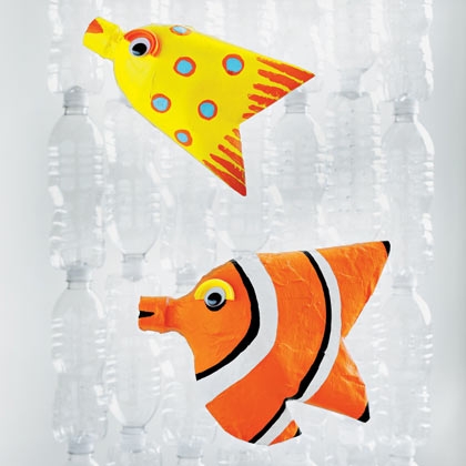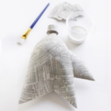 Скотчем крепим плавник и нижние плавники рыбы. После этого покрываем рыбу газетой, или бумагой при помощи клея . Когда бумага под сохнет разукрашиваем