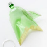 Маркером отмечаем контур рыбы. Отрезаем бутылку. Отдельно вырезаем плавник
