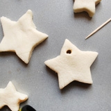 Делаем соленое тесто: для этого в кастрюле нужно перемешать стакан муки и полстакана соли. В эту смесь постепенно добавляем четверть стакана очень холодной воды. Муку нужно использовать пшеничную, блинная в этом случае не годится, соль обязательно мелкая.