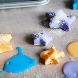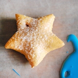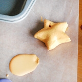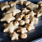 Разделяем тесто на части. Ножом аккуратно вырезаем звезду, зубочисткой делаем отверстие.