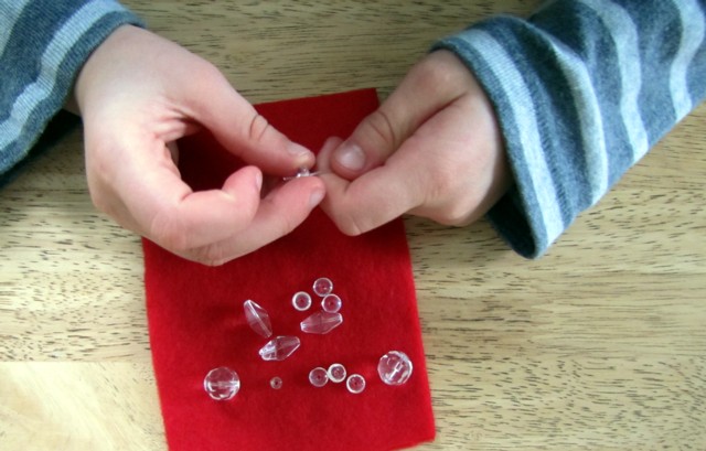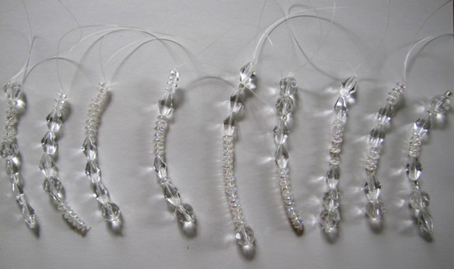 Нарезаем леску нужной длинны, вяжем большой узел с одной стороны и начинаем нанизывать в произвольном порядке различные бусинки.