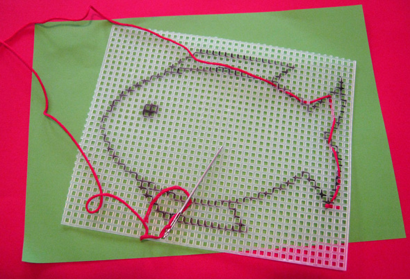 Вышивка для детей: Рыбка Понадобится: Нитки мулине Большая игла Ткань Рисуем на нашем «панно» рыбку. Даем ребенку «творить».