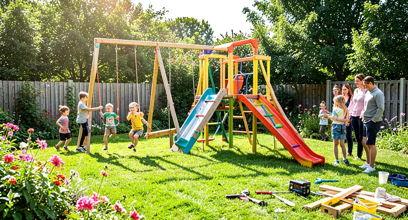 - Сборка игровых элементов: Согласно инструкции производителя, соберите горки, качели, шведские стенки. Проверьте надежность всех креплений.
