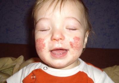 Недуг проявляется незначительным покраснением кожи либо сыпью. Это могут быть небольшие красные пятна. Тяжелая форма протекания болезни у малыша — отеки, сильно выраженное покраснение кожи, волдыри. Обычно этот кожный недуг не требует применения лекарств, достаточно использования ванночек с ромашкой, календулой, корой дуба.