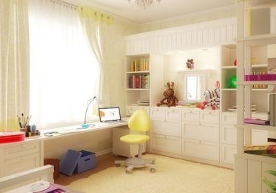 Располагать мебель лучше по периметру, а центр комнаты сделать полностью свободным от нее. Позаботьтесь о достаточном количестве в зоне досягаемости всевозможных полочек и подставочек, ведь непоседа-девчонка обязательно найдет, что на них расположить. Ни для кого не секрет, что все девочки – это любительницы всякой всячины: бус и заколок, блокнотов и открыток, бантиков и фантиков. Кстати о бижутерии – любая девочка, будь он хоть истинной «пацанкой», придет в восторг от красивого трюмо с большим зеркалом в стильной оправе и множеством небольших выдвижных шкафчиков – в них так удобно будет хранить свои сокровища. А частое заглядывание в зеркало позволит развивать ей свое женское начало, научит быть всегда красивой и разовьет эстетические чувства. Поэтому не нужно экономить на такой покупке – сделайте ребенку замечательный подарок.