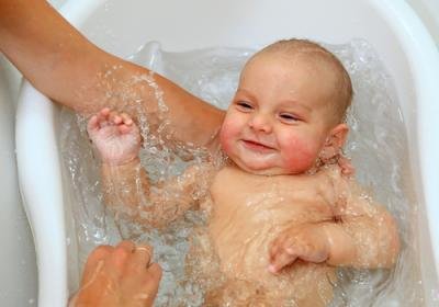 Купать новорожденного рекомендуется не менее 2 раз в день, а летом чаще — до 4 раз. Использовать каждый раз мыло не нужно, лучше добавить в воду слабый розовый раствор марганцовки или сбор трав, обладающий подсушивающим эффектом. Это могут быть кора дуба, череда, ромашка, отвар из листьев грецкого ореха. Марганцовку добавлять в ванну не чаще 1 раза в 2 дня, так как она имеет свойства сушить кожу и делает ее более беззащитной для инфекций и микробов. Необходимо обратить внимание, чтобы у новорожденного не было на них аллергии. Также подсушивает кожу сода. Чайная ложка соды растворяется в кипяченой воде комнатной температуры. Салфетку смочить в растворе и протирать пораженные участки кожи. Подмывать младенца обязательно каждый раз при смене подгузника. После купания кожные покровы следует слегка промокнуть полотенцем. Также рекомендуется регулярно и тщательно протирать кожу влажными салфетками. Раздраженные участки кожи можно обработать тальком или специальными маслами и кремами. Проникновение талька в дыхательные пути опасно для новорожденного, поэтому тальк насыпьте себе на руку, а потом только на кожу ребенка. Крема используют с содержанием пантенола, который способствует быстрому восстановлению кожи. Детское масло смягчает кожу и покрывает ее защитной пленкой. По совету педиатра можно подобрать специальные косметические средства для борьбы с потницей.